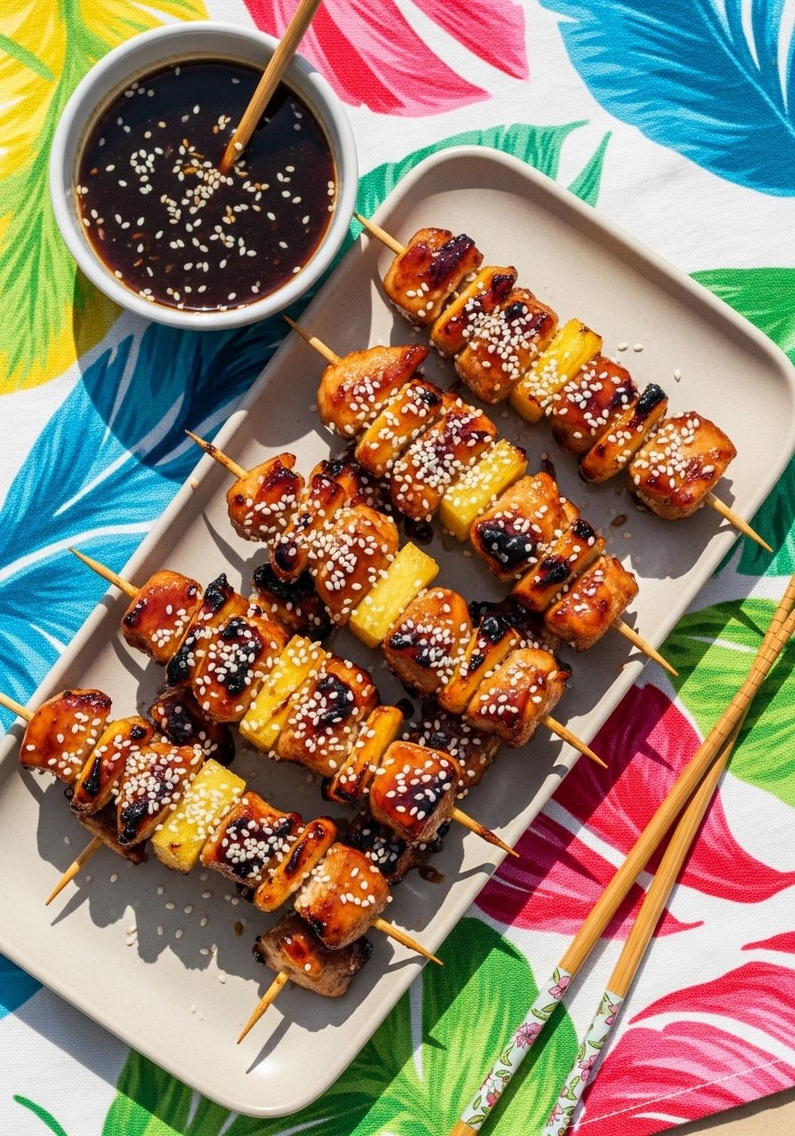Sweet pineapple and savory teriyaki BBQ glaze turn simple chicken into a summer-style skewer dinner. The edges char slightly in the air fryer, and the pineapple gets juicy and caramelized.