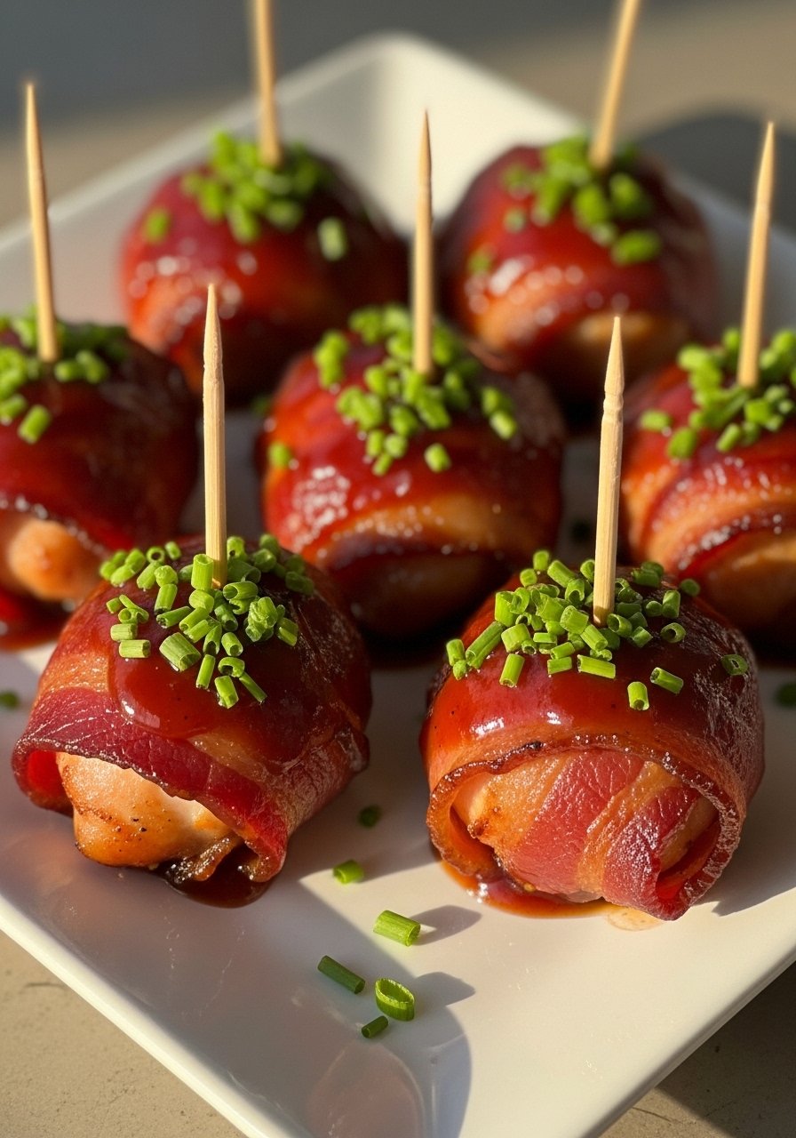 Air fry at 375°F for 12–14 minutes, turning halfway, until bacon is browned and chicken is cooked. - Glaze