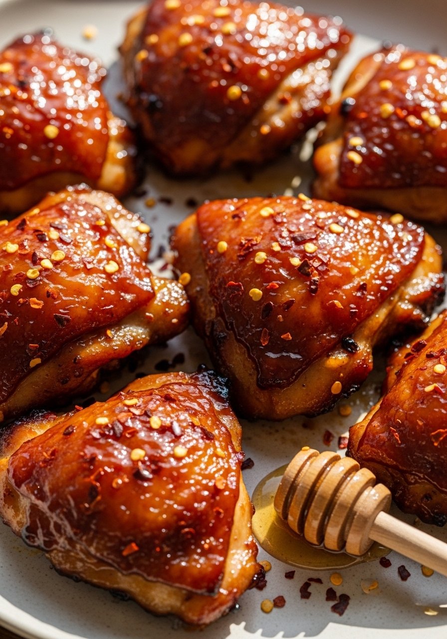 Hot honey gives you that sweet heat that tastes like summer. Combined with BBQ sauce, it turns into a shiny glaze with a gentle kick. Thighs stay juicy and forgiving in the air fryer.