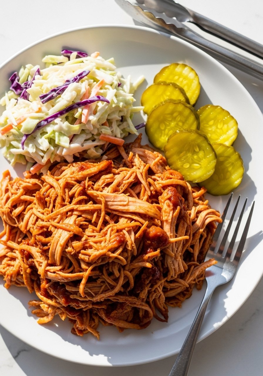 This is a shortcut to saucy pulled chicken without a slow cooker. You’ll air fry, rest, then shred and coat everything in warm BBQ sauce. It’s perfect for sandwiches, tacos, or rice bowls.