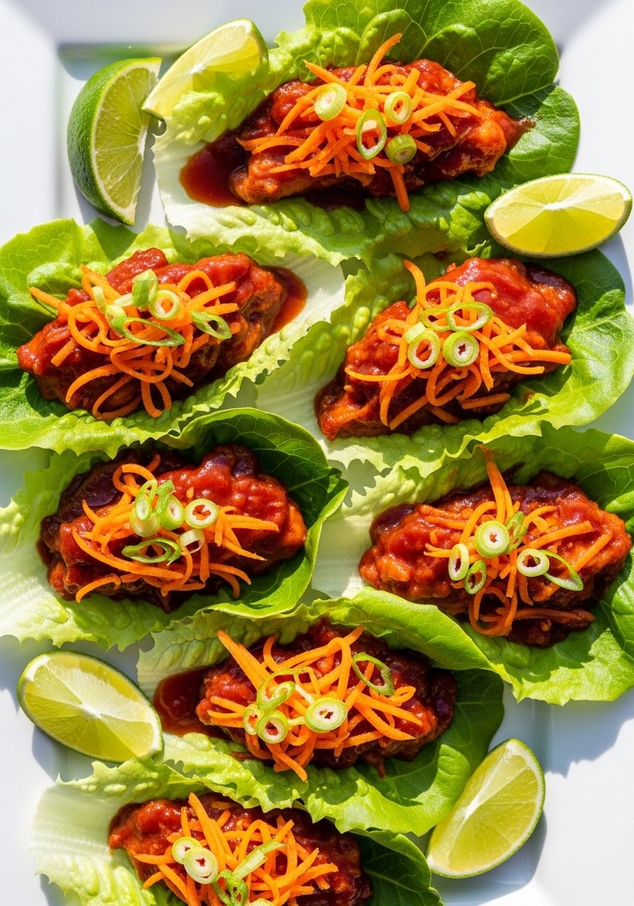 These lettuce wraps are light, saucy, and fast. The chicken cooks in small crumbles, then gets tossed in BBQ sauce for a sticky filling. Great when you want BBQ flavor without a heavy plate.