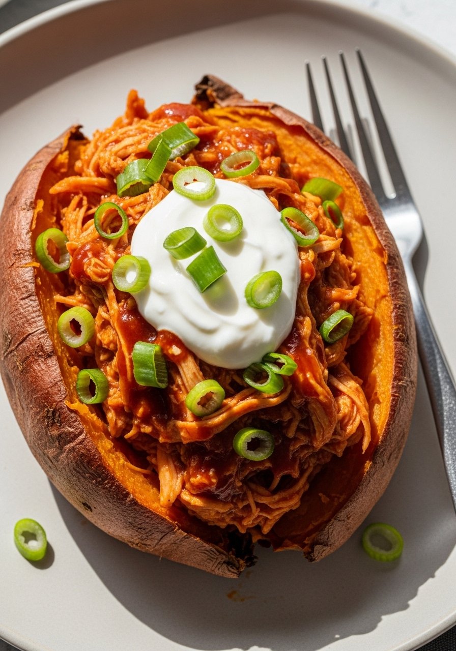 This is an easy, wholesome dinner that still feels saucy and fun. The sweet potato turns tender and sweet, and the BBQ chicken filling makes it hearty. Great for meal prep, too.