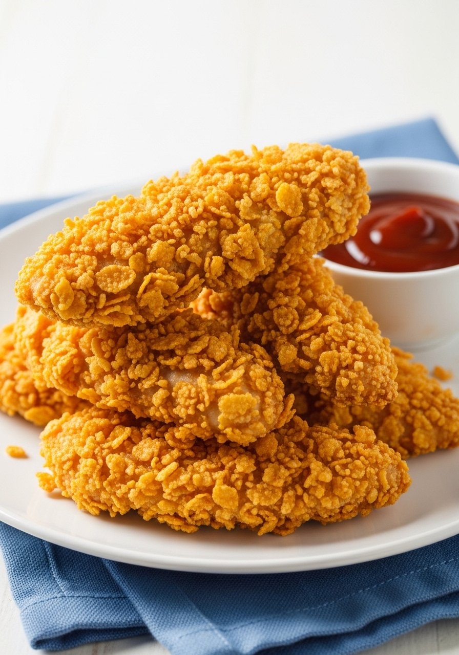 - Coat: Flour → egg → cornflakes, pressing firmly.