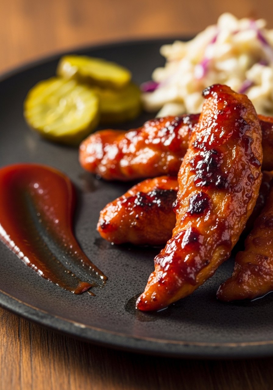 Sweet, smoky BBQ sauce clings to these tenders without turning them soggy. You air fry them crisp first, then finish with a quick glaze so the edges caramelize just right.