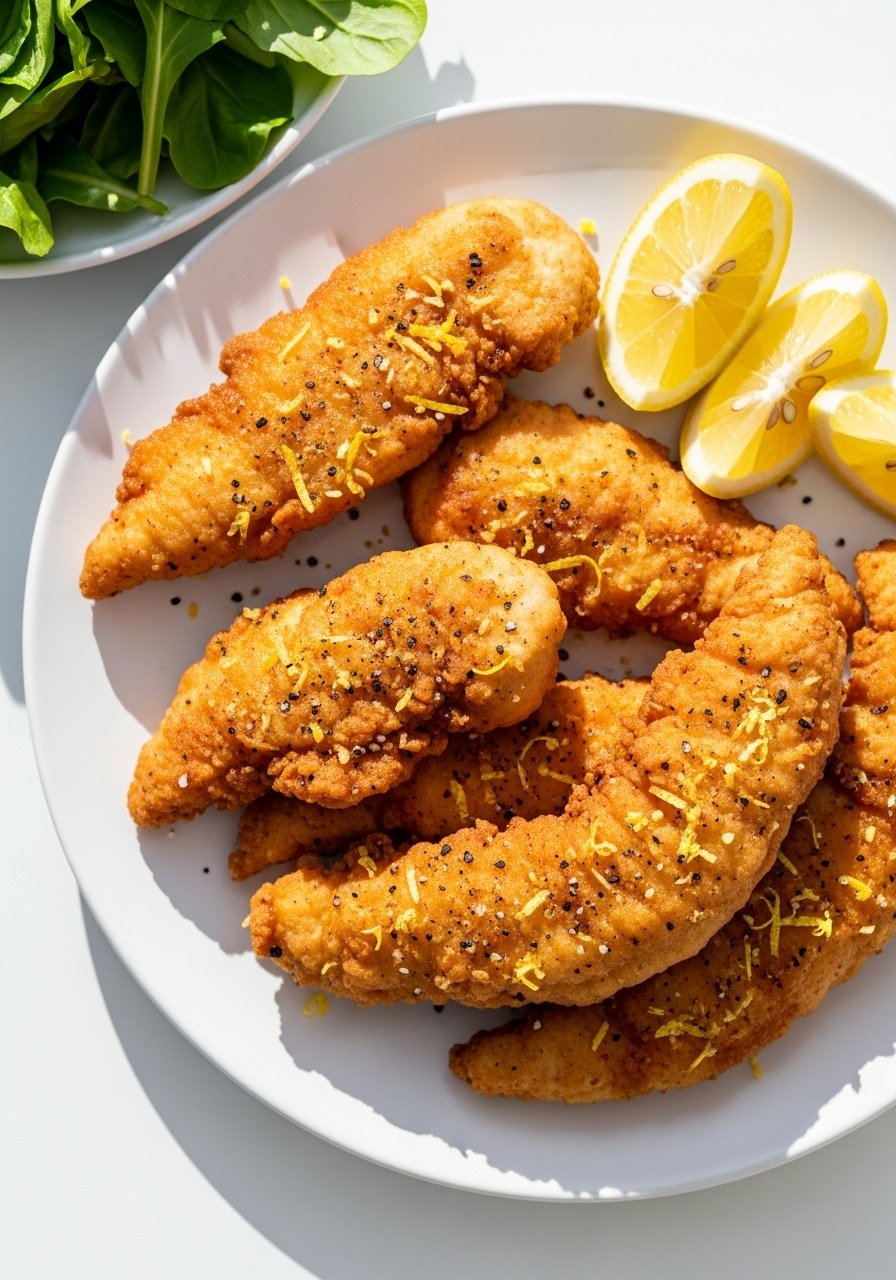 Bright lemon zest and bold black pepper keep these light and zippy. The coating is thin and crisp, so you still get crunch without a heavy breading. Perfect with a simple salad or roasted veggies.
