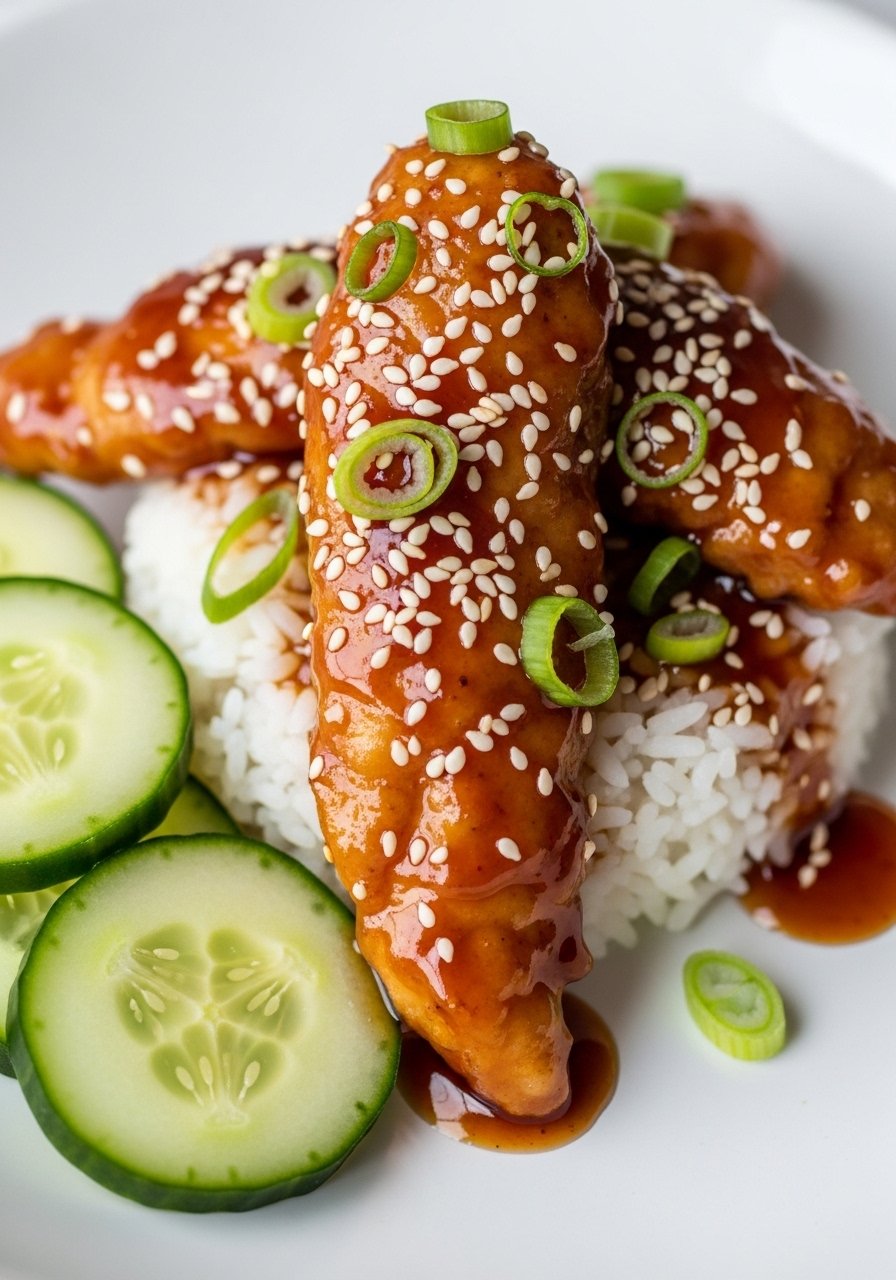 Sweet-savory teriyaki glaze turns tenders into a fast dinner bowl. You cook them crisp, then glaze at the end so the sauce stays shiny and sticky. Kids love the sweetness; adults love the sesame bite.