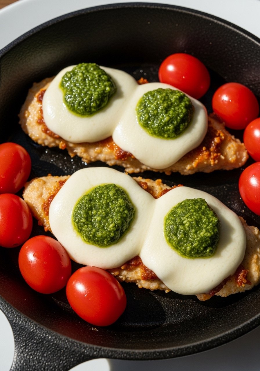 These are cheesy, herby, and feel like a quick Italian dinner. You air fry the tenders first, then melt mozzarella on top and finish with pesto. Great with pasta, salad, or garlic bread.
