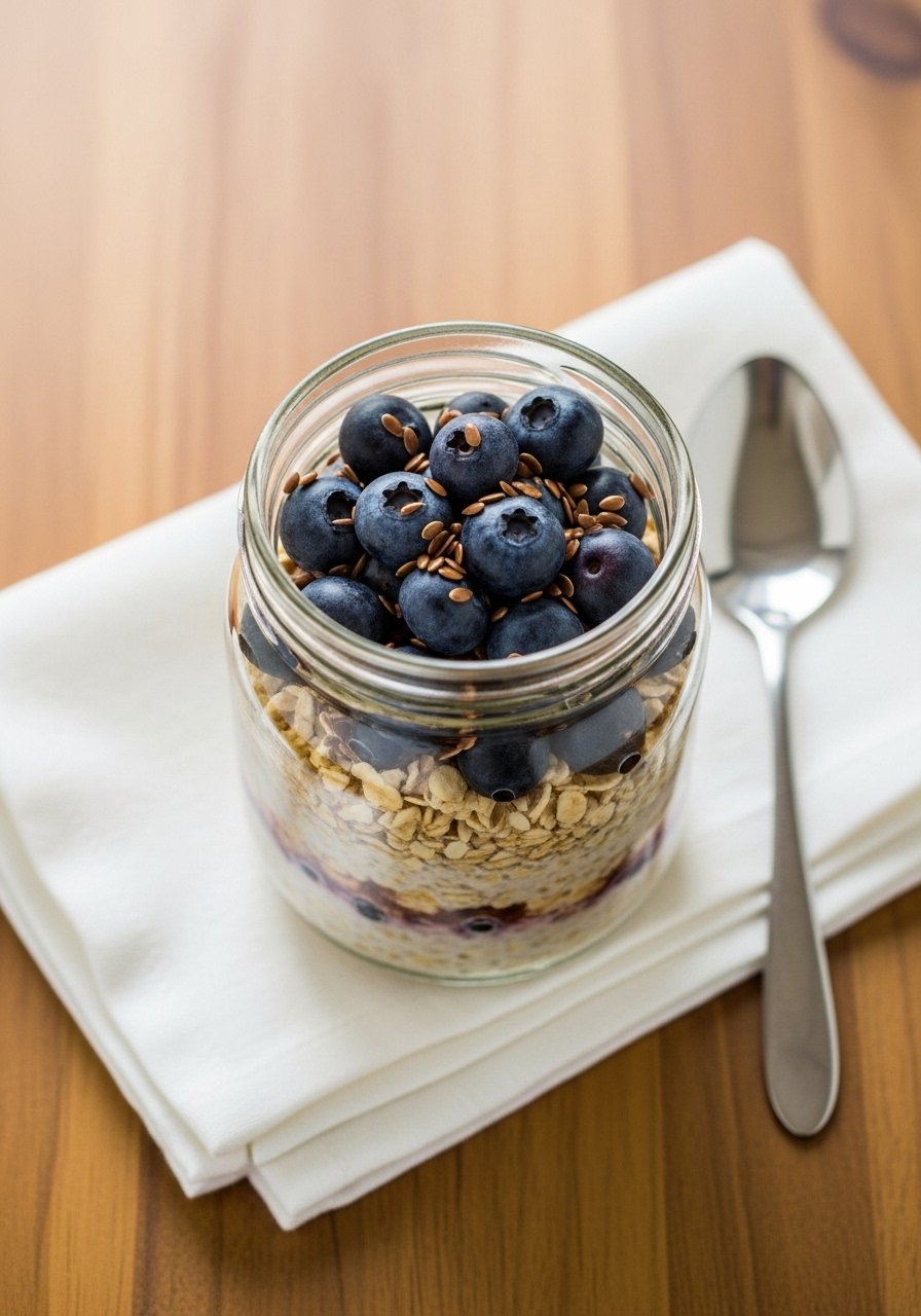 - Combine: In a jar, mix oats, milk, yogurt, flaxseed, and sweetener.