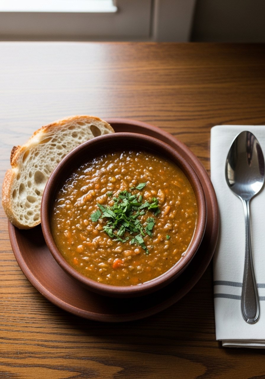 - Simmer lentils: Add lentils, tomatoes, and broth. Bring to a boil, reduce to low, simmer 25–30 minutes until lentils are tender.