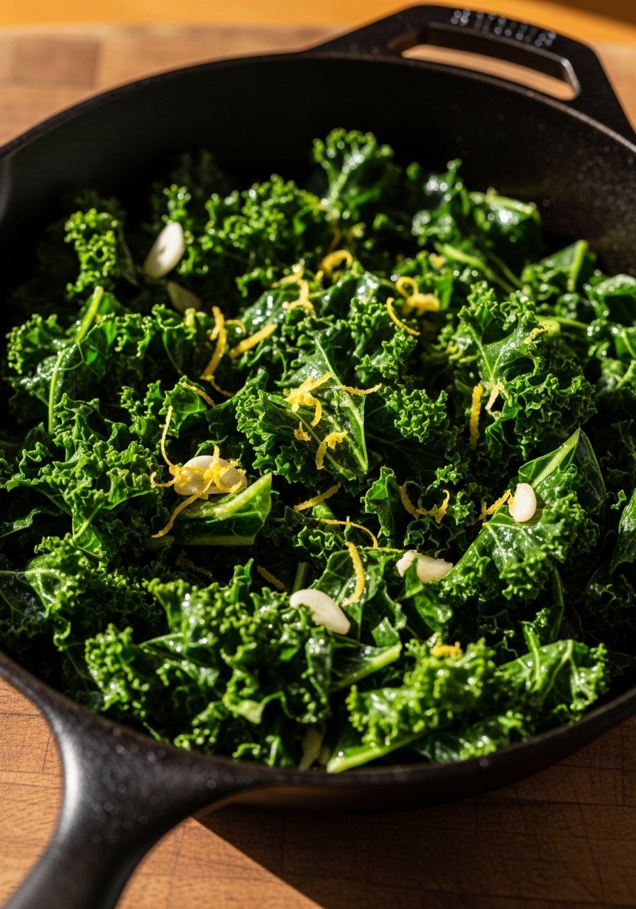 Quick, garlicky greens with lemon bite. Kale wilts fast and keeps nutrients intact when lightly sautéed.