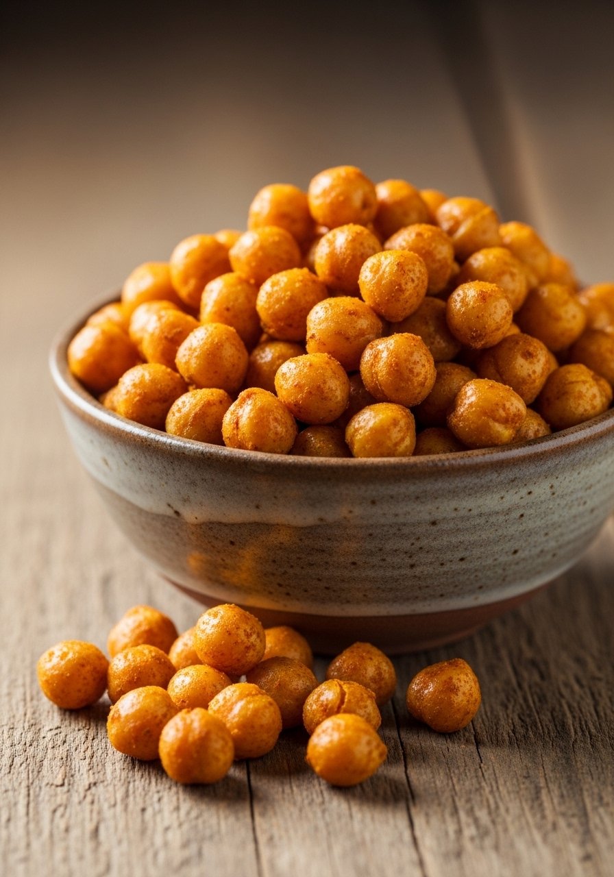 - Toss and roast: Mix chickpeas with oil and spices, spread on baking sheet, roast 25–30 minutes, shaking pan halfway, until crisp.