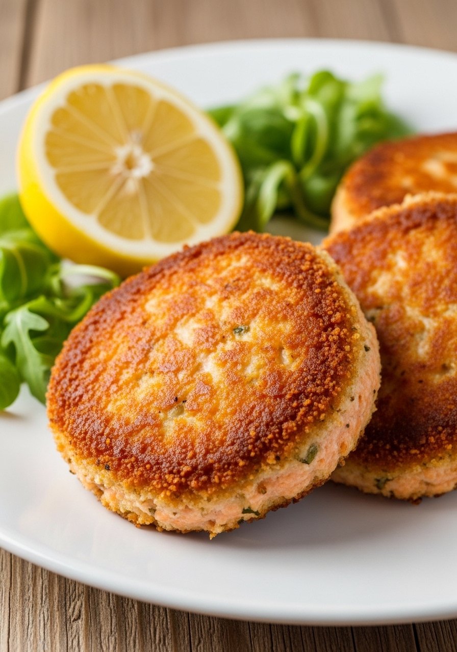 - Cook: Heat oil in skillet over medium, cook patties 4–5 minutes per side until golden and cooked through. Serve with lemon.