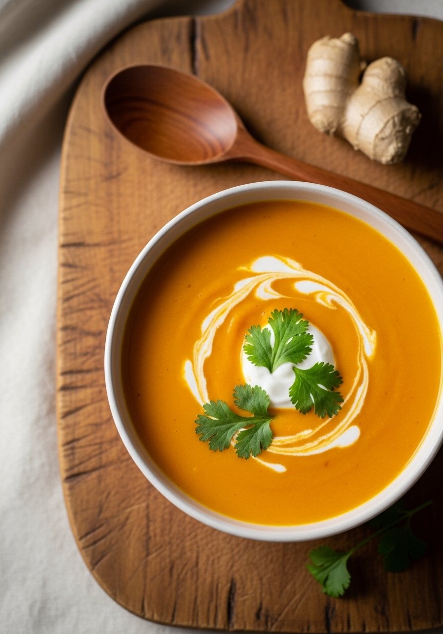 Silky and slightly sweet with a warm ginger kick. This pureed soup is soothing and beginner-friendly, perfect for lunch or light dinner.