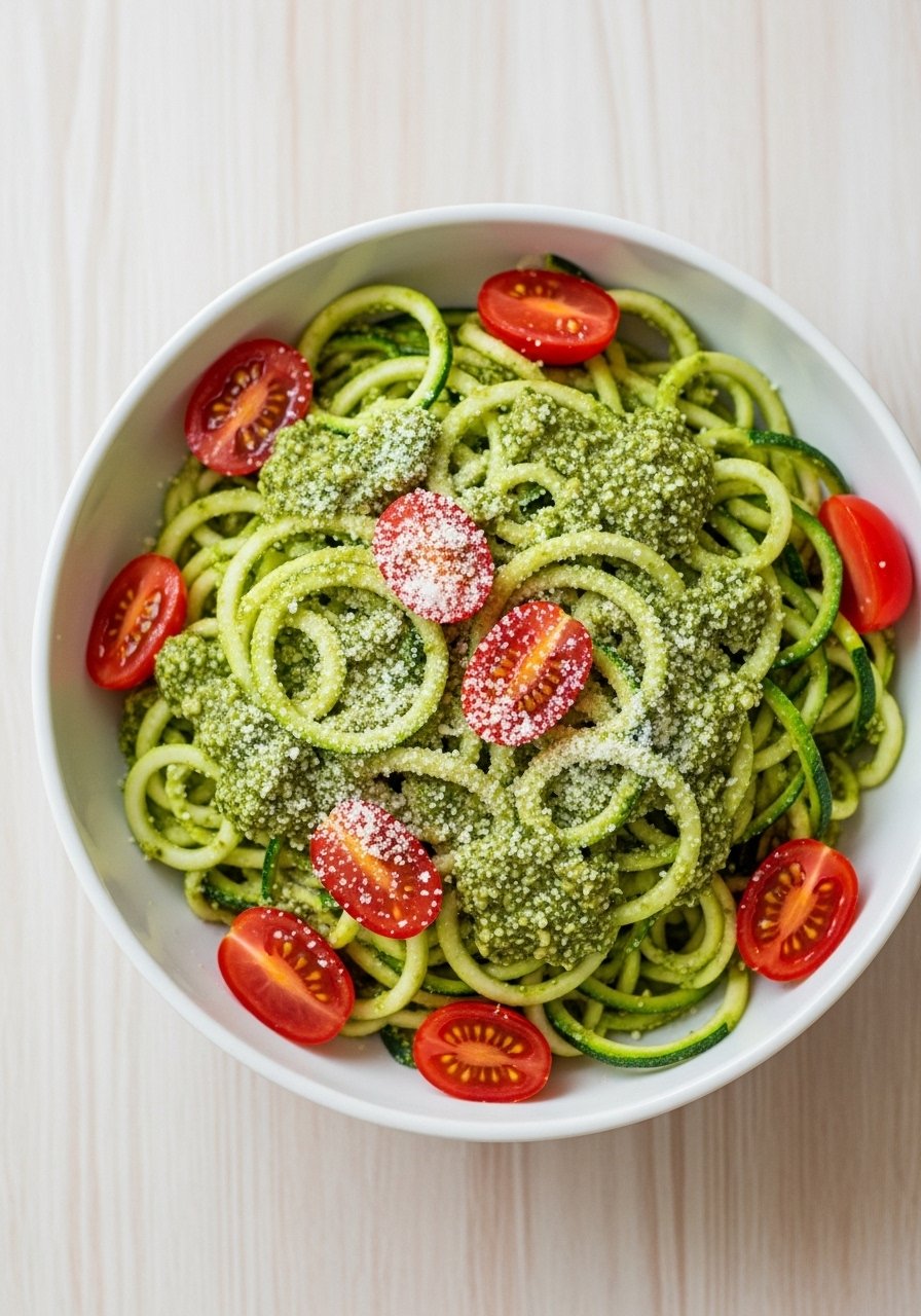 19. Zucchini Noodles With Basil Walnut Pesto And Cherry Tomatoes