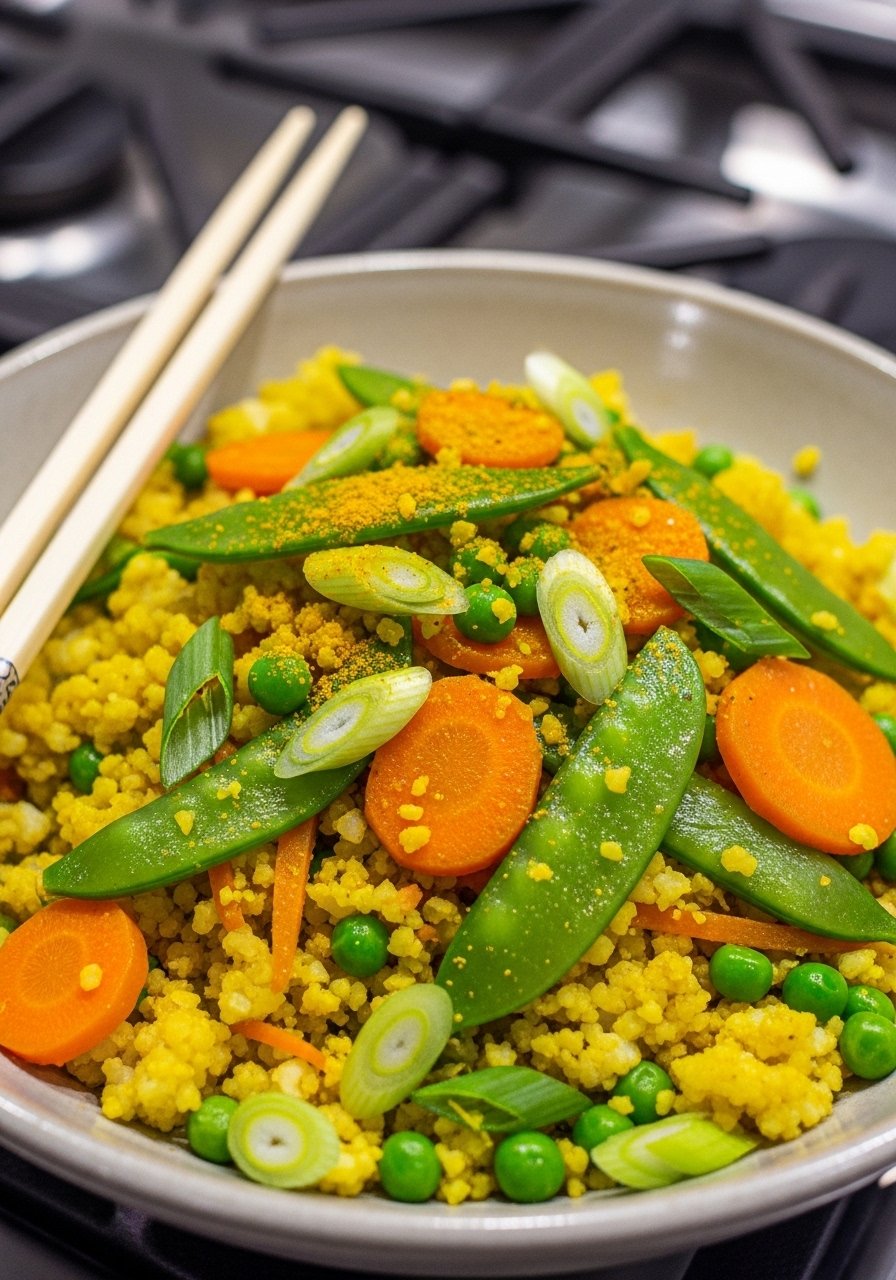 Low-calorie cauliflower rice with colorful veggies and turmeric. Fast, fragrant, and great as a side or light main.