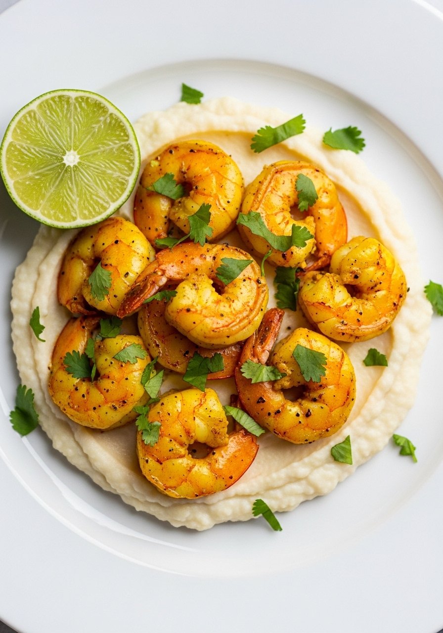 18. Turmeric-Lime Shrimp Over Cauliflower Mash