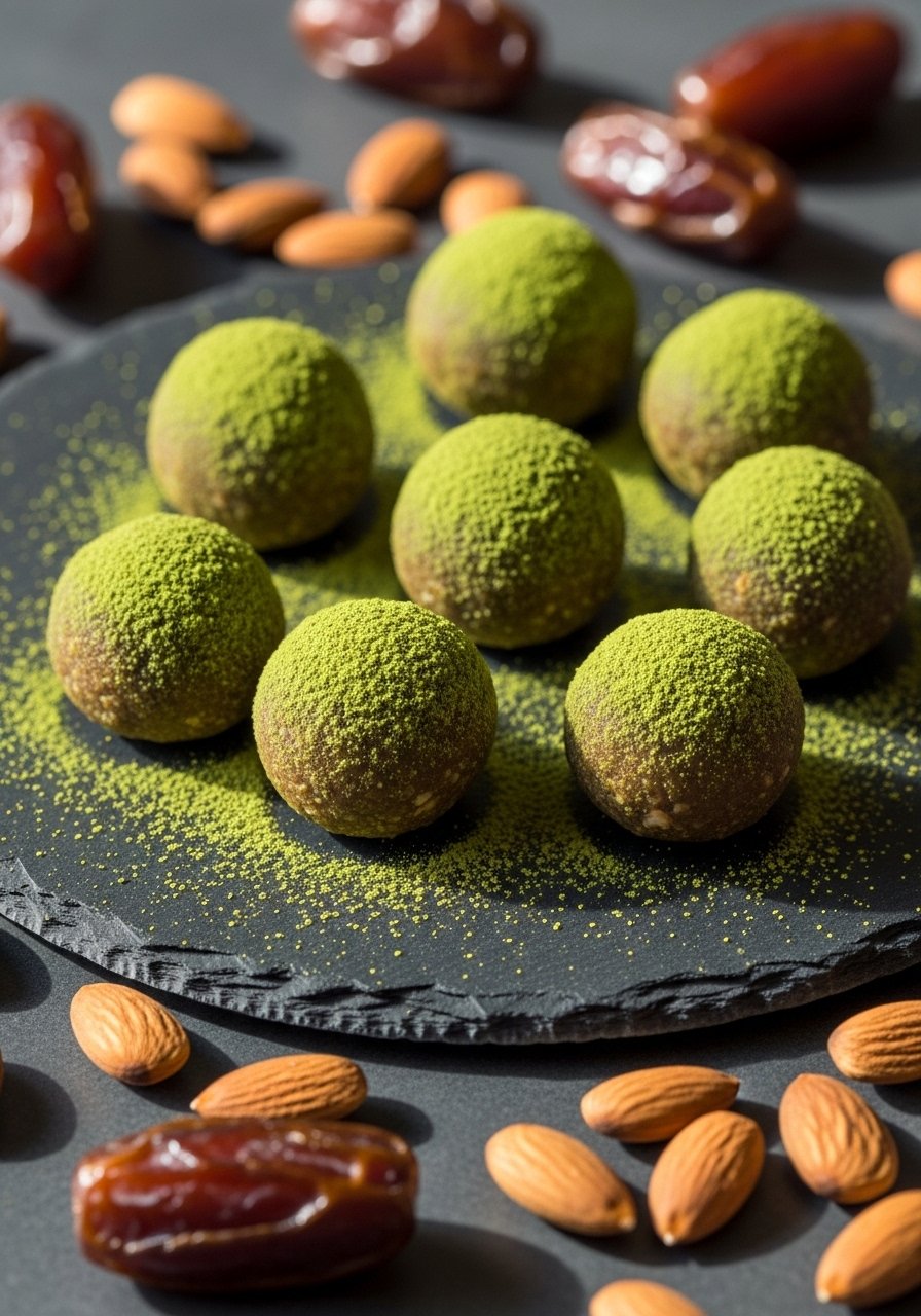 No-bake bites with matcha, dates, and almonds for a focused energy boost. Portable and sweet without refined sugar.