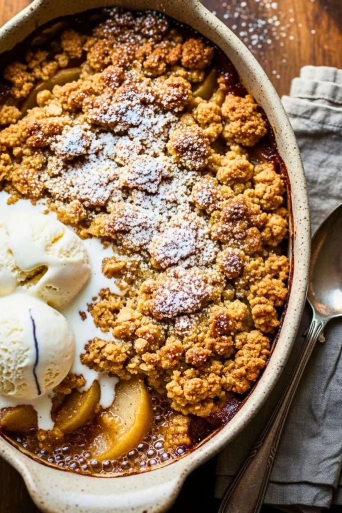 As it bakes, the apples become soft and juicy, and the topping turns golden and crispy. The contrast between the soft fruit and crunchy topping makes every bite delicious.