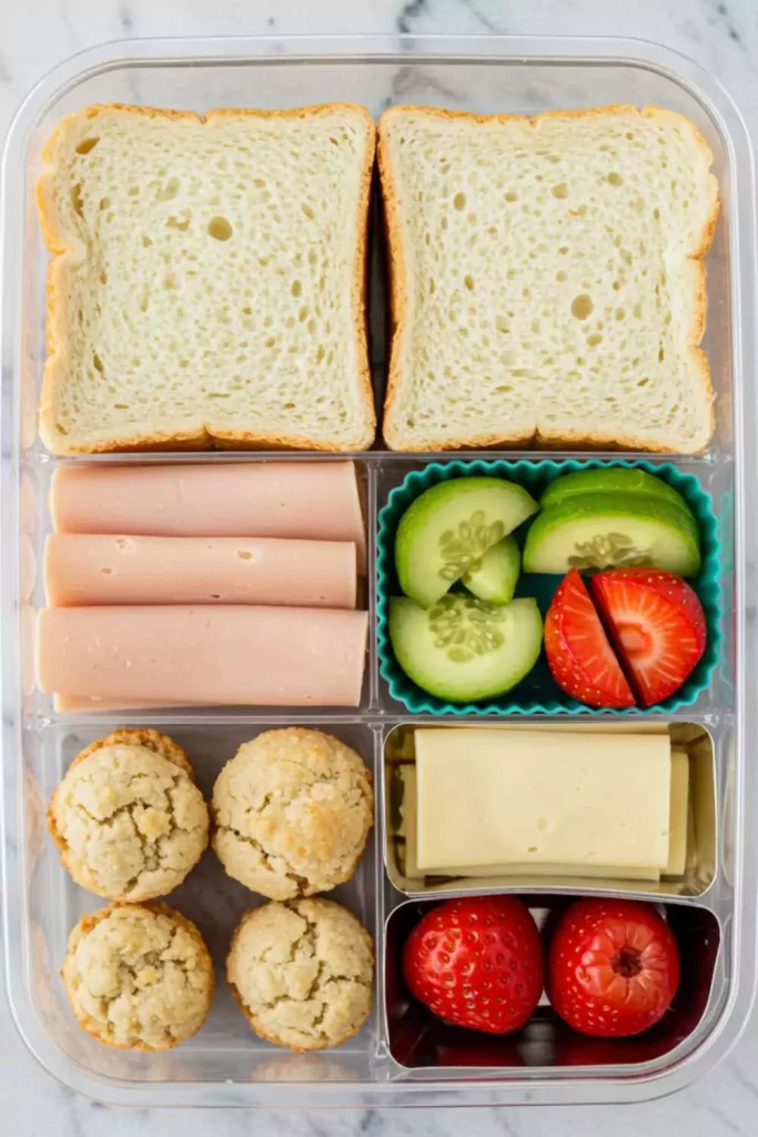 Kids love DIY style lunchboxes where they assemble their own mini sandwiches. It’s fun, customizable, and easy to prepare with what you have in the fridge.