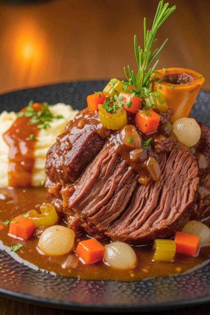This recipe brings out the natural richness of the beef, complemented by aromatic vegetables, herbs, and a savory sauce that’s perfect for mopping up with crusty bread or serving over creamy mashed potatoes.