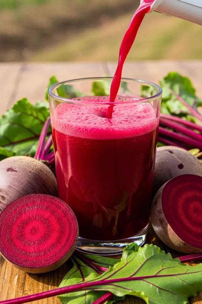 Beet juice is rich in nitrates, which support healthy blood flow and may improve exercise performance and stamina.