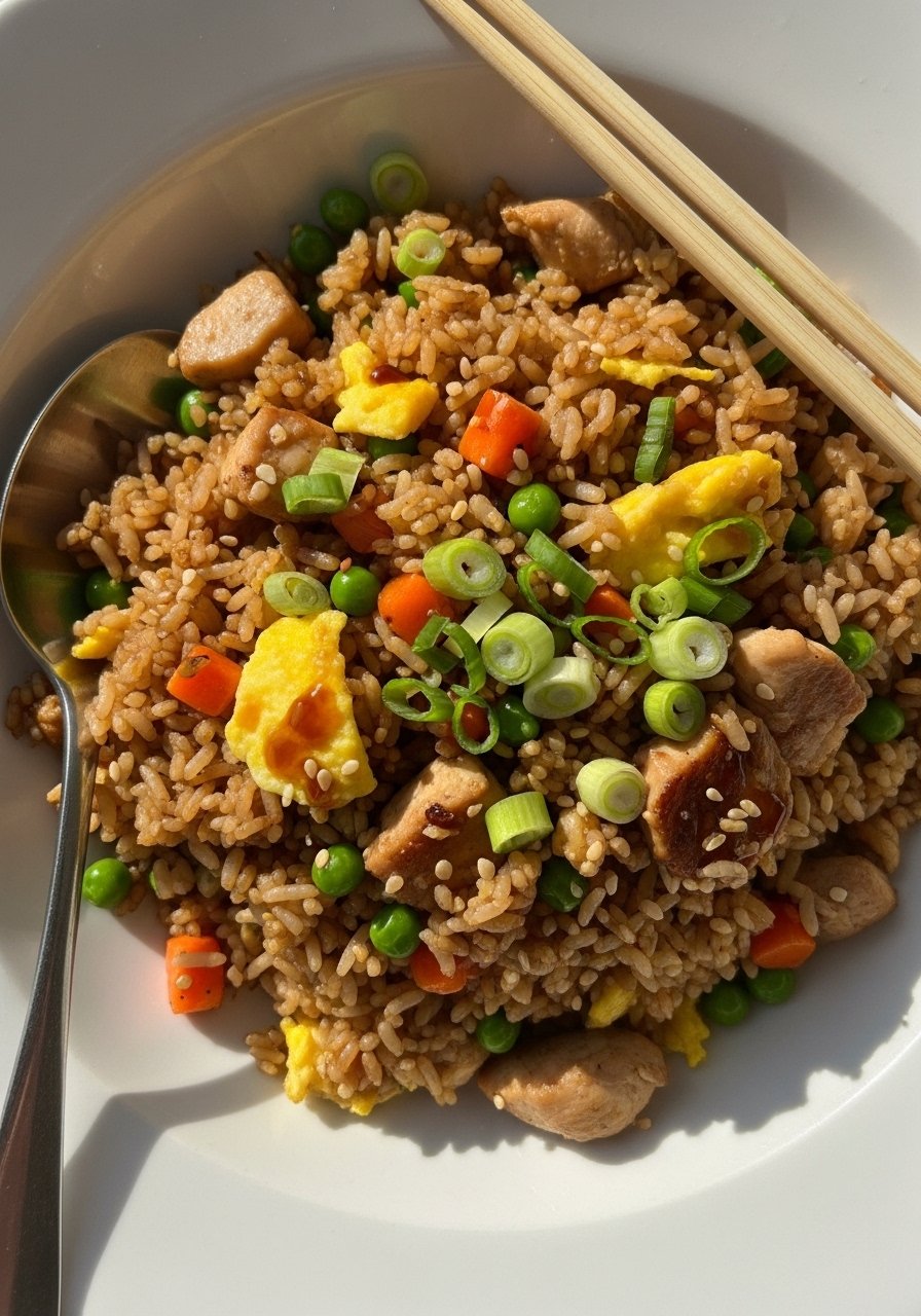 This is the ultimate use-up-what-you-have dinner. Day-old rice crisps better, the egg cooks in seconds, and everything gets that classic savory soy flavor. You’ll want seconds.