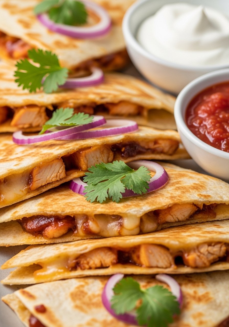 - Flip and crisp: Flip and cook tortilla side 1–2 minutes until crisp and chicken hits 165°F. Top and serve.