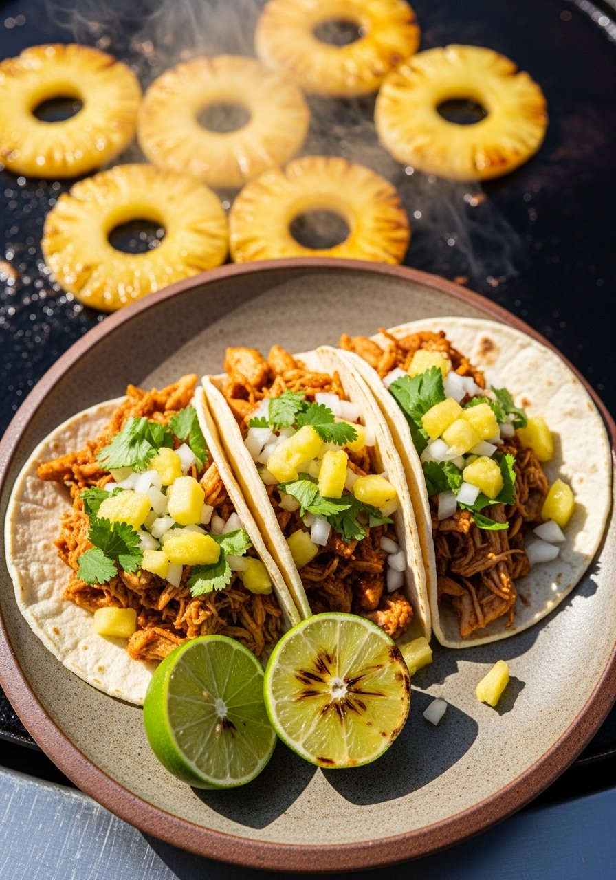 You get that skewer flavor without the hassle. Chicken and pineapple caramelize right on the griddle, then you glaze with BBQ sauce for a sticky finish. Sweet, smoky, and fast.