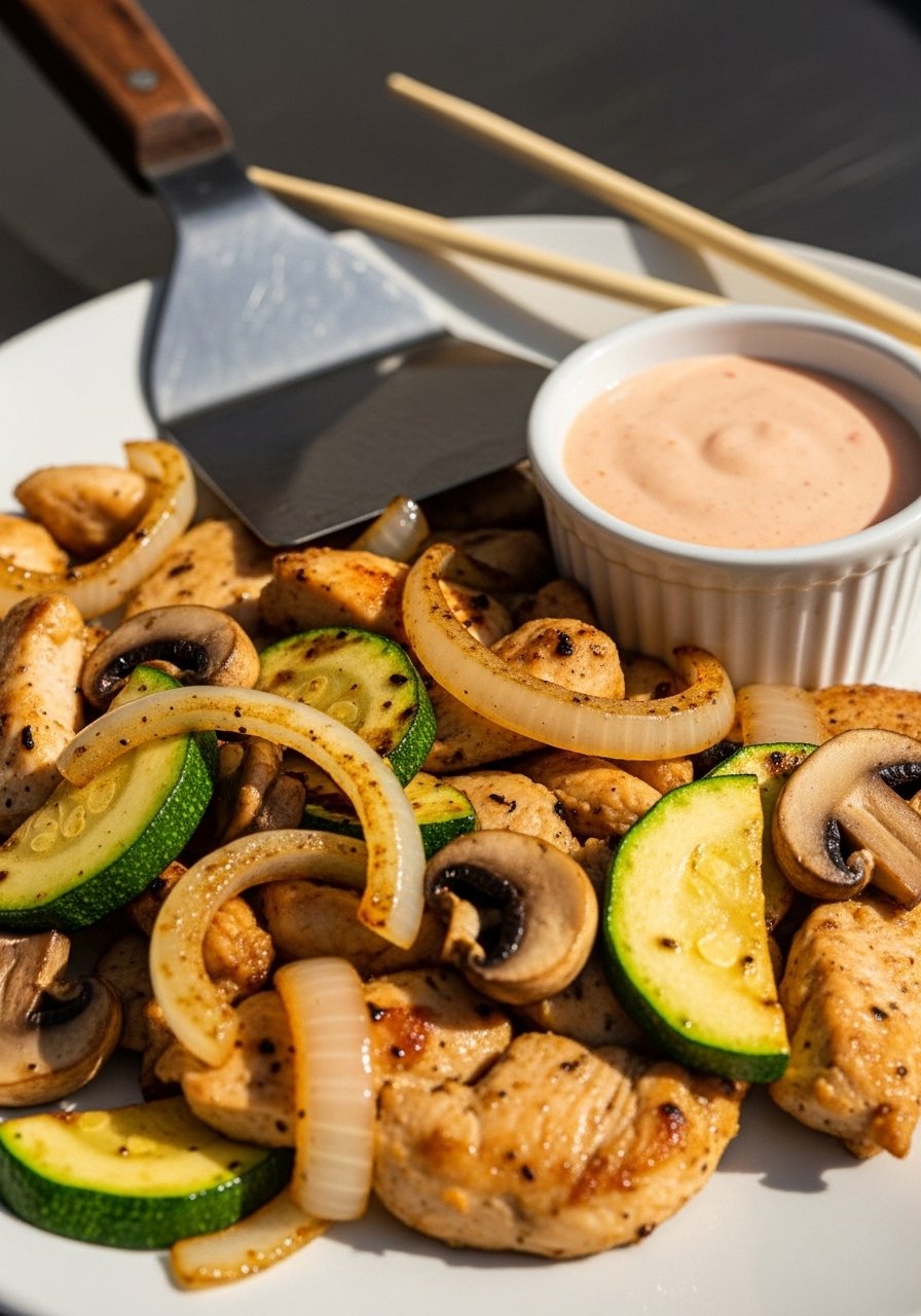 This one is sweet-salty, sticky, and fast. The sauce reduces quickly on the griddle, coating every bite. It’s a weeknight win when you want takeout vibes without waiting.