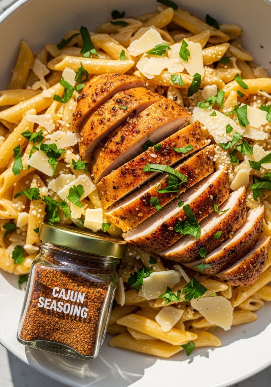Spicy Cajun chicken with a quick creamy sauce feels like comfort food without much work. Cook the chicken on the griddle for that sear, then toss with hot pasta and sauce.