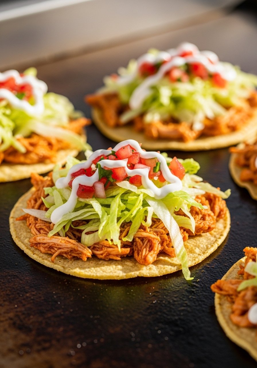 These cook like a dream on a flat top. You press seasoned chicken onto tortillas, sear, flip, and get crispy edges fast. They’re crunchy, juicy, and perfect with quick toppings.
