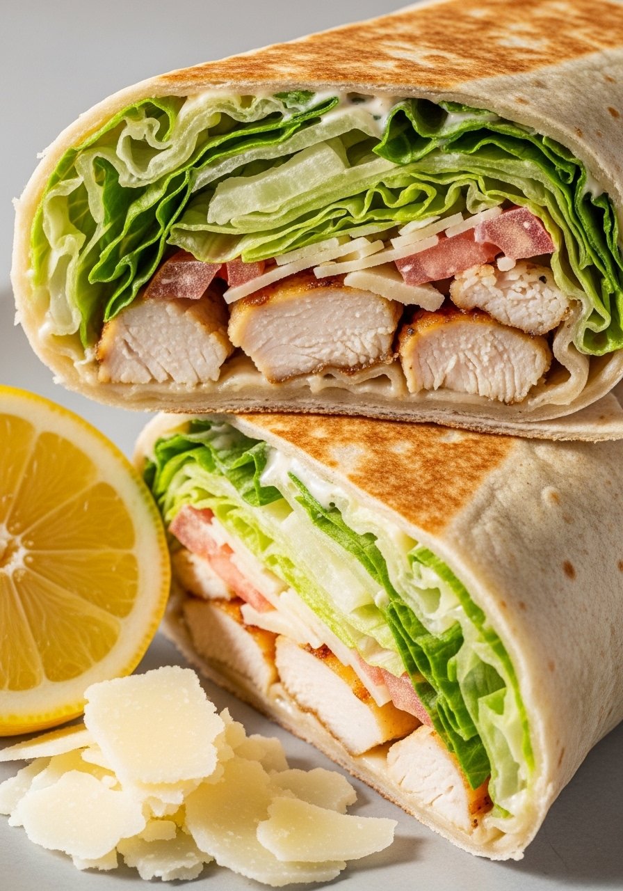 Warm chicken, crunchy romaine, and salty Parmesan make this wrap feel like a full meal. The griddle crisps the tortilla so it holds together and tastes extra good.