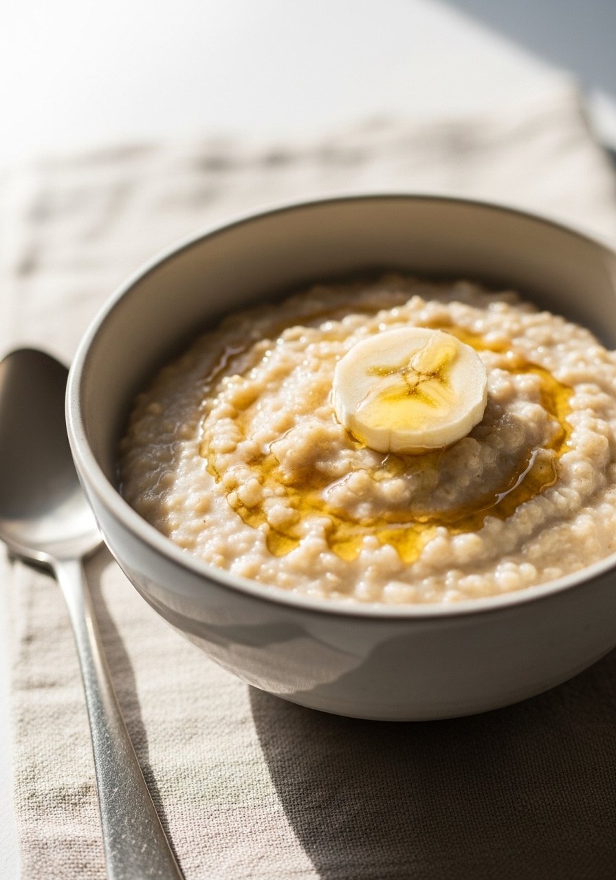 - Finish: Stir in banana and butter or milk, adjust salt, and serve warm.