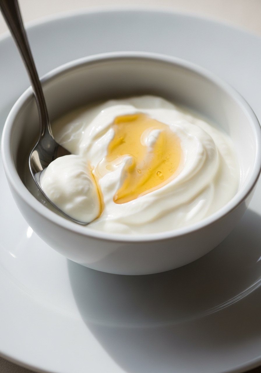 Thick Greek yogurt provides protein and a smooth texture. A little honey adds mild sweetness without overpowering delicate digestion.