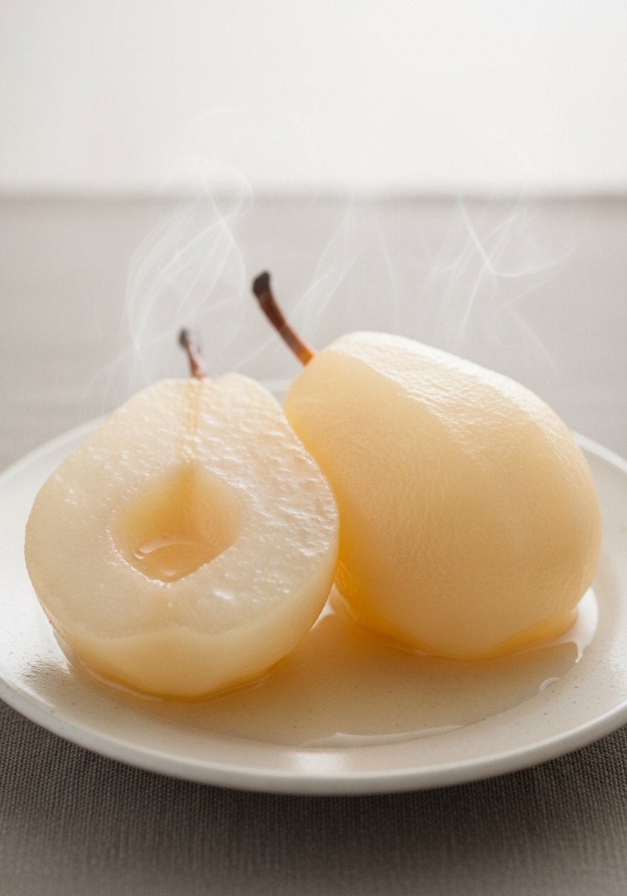 Steamed pears are soft and naturally sweet. The steaming makes them tender and easy to chew, perfect for a gentle breakfast.