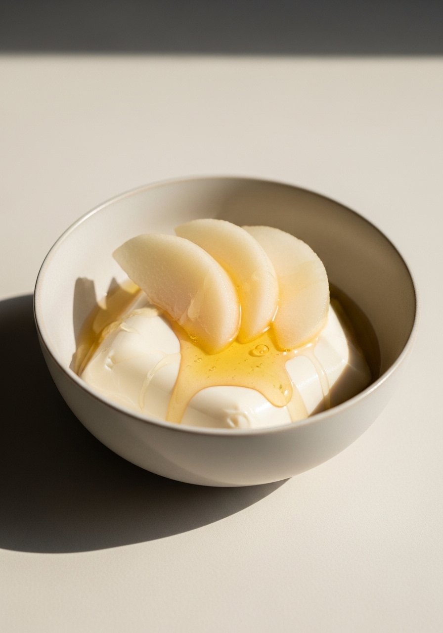 - Assemble: Spoon tofu into a bowl and top with soft fruit slices.
