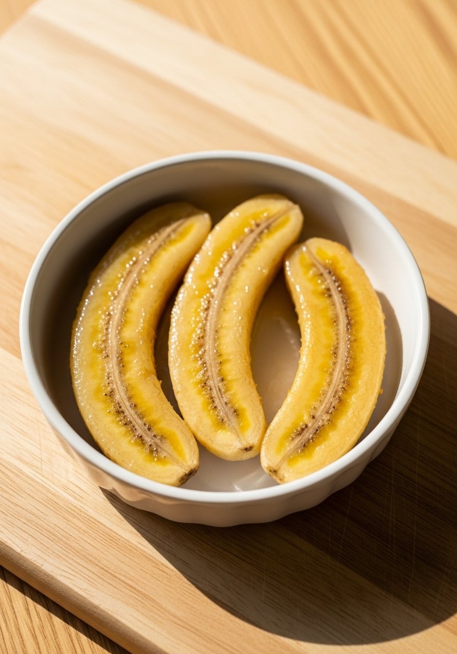 Baked banana cups are soft and naturally sweet. Baking makes the banana tender and caramelized without spices.