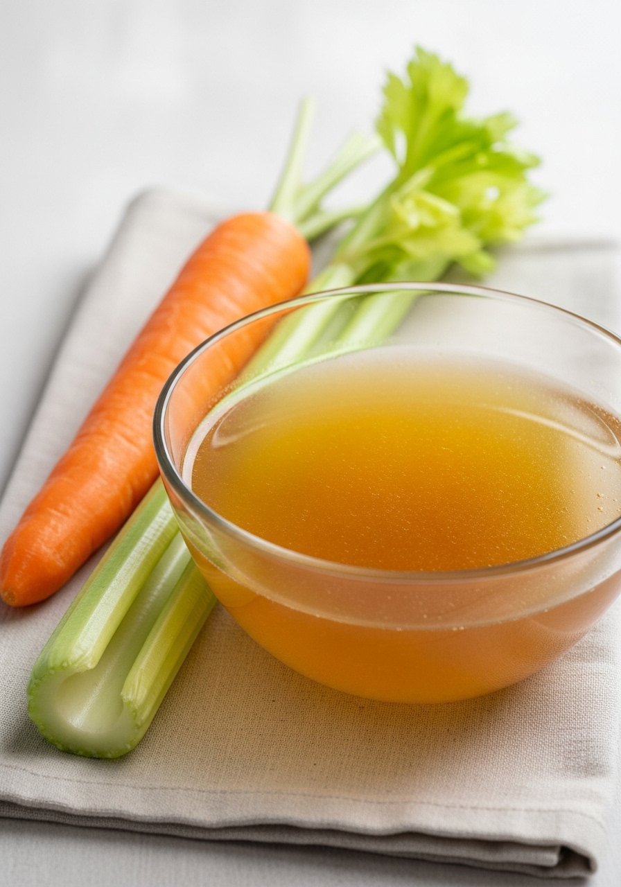 Warm, clear, and soothing. This homemade chicken broth is light on the stomach and full of gentle flavor, perfect as a base or a simple restorative drink after illness.