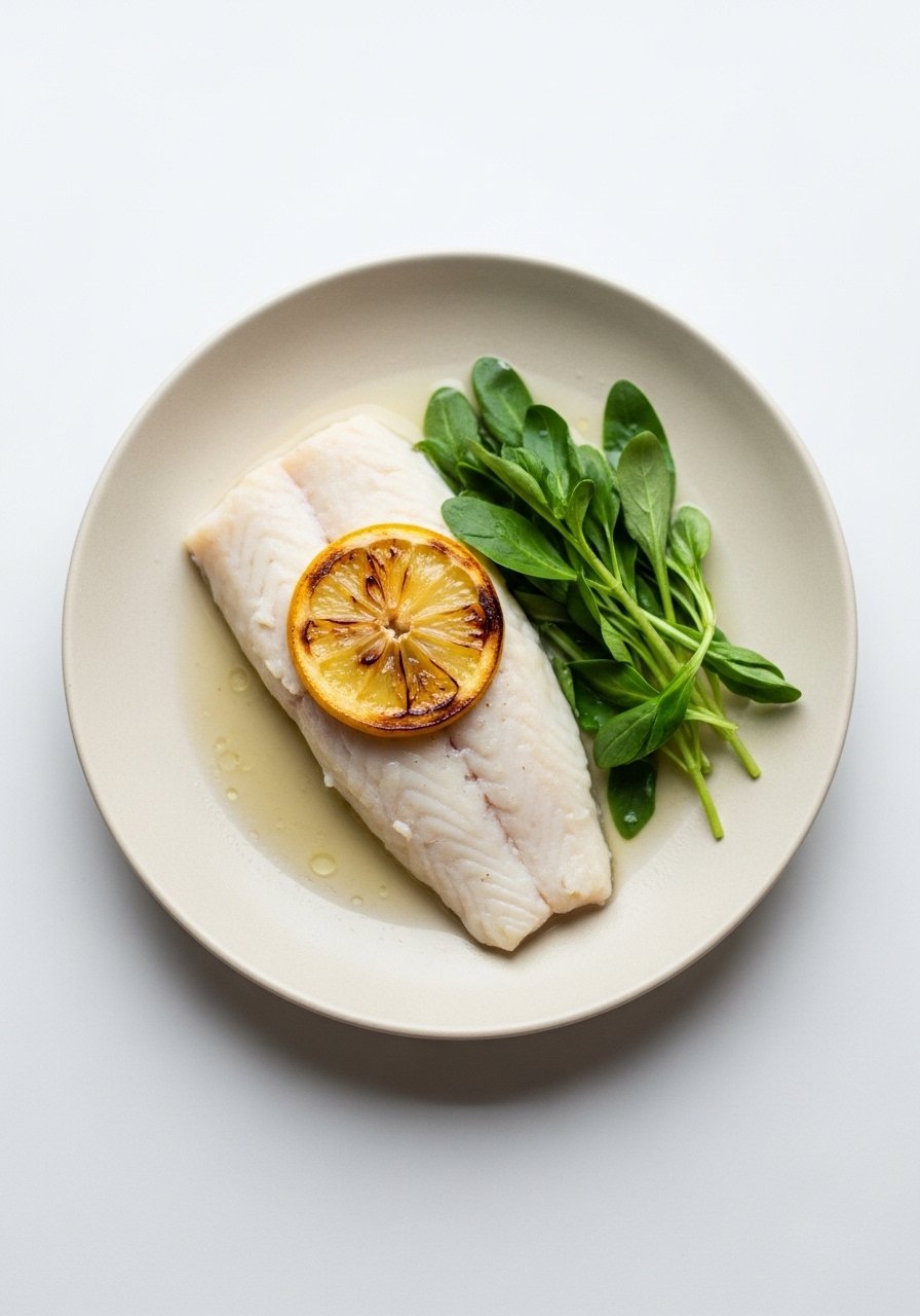 Delicate, flaky fish baked simply. Mild-tasting white fish like cod or tilapia offers gentle protein without heavy oils or spices.