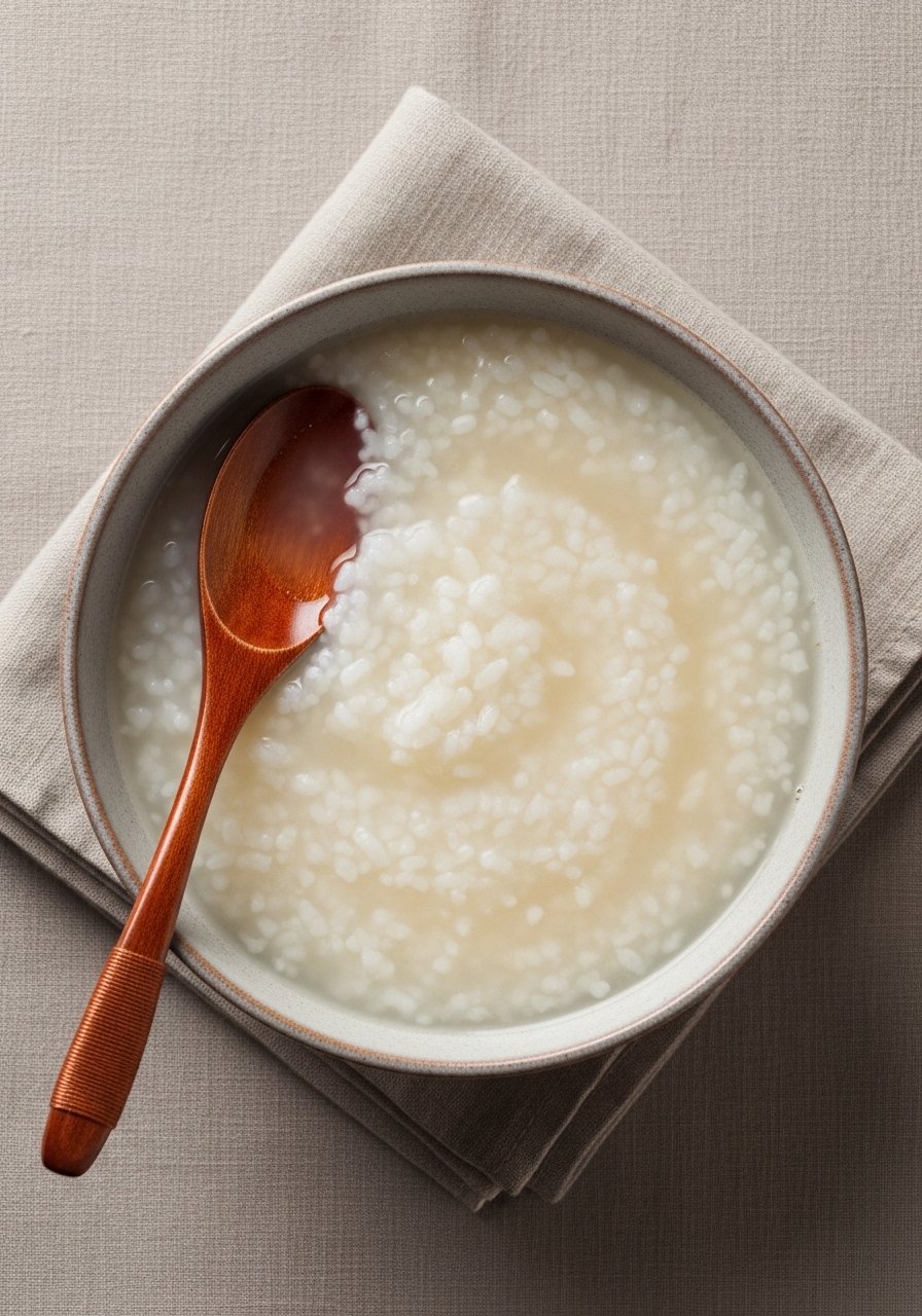 Comforting and easy to digest. Congee is simply slow-cooked rice in extra water, creating a silky porridge that pairs well with soft proteins.