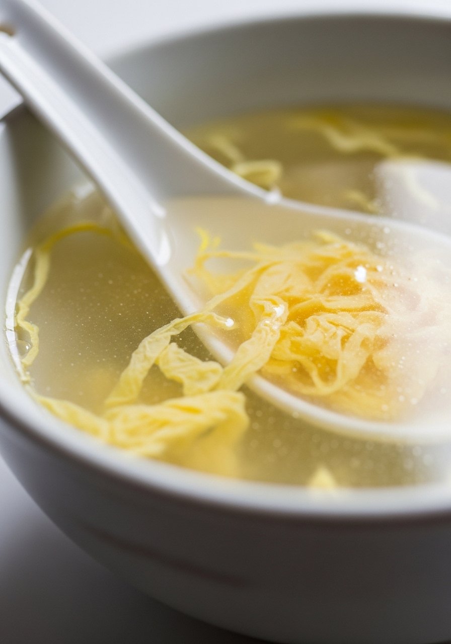 Light and warm with delicate egg ribbons. Egg drop soup gives protein and comfort without heavy seasoning.
