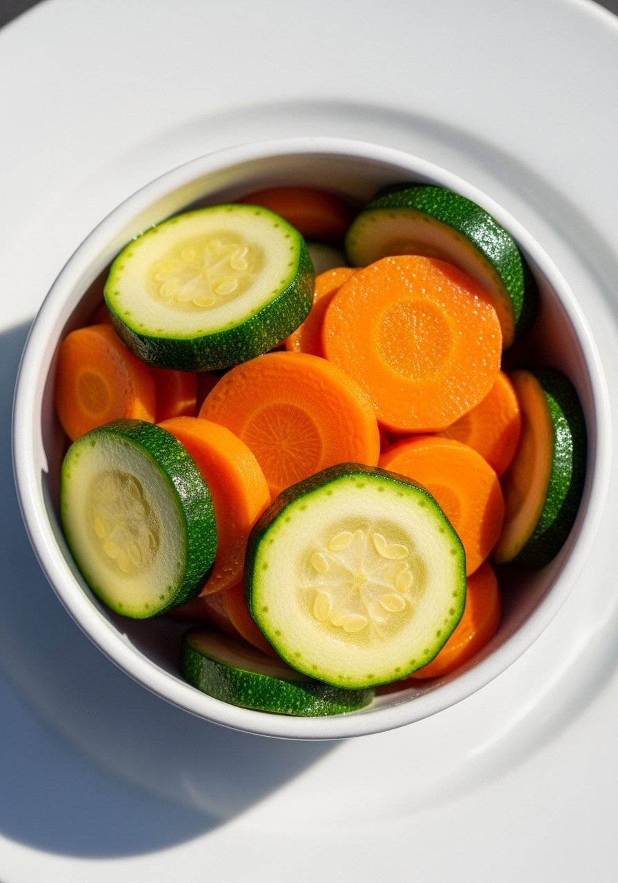 Simple steamed vegetables are tender and mild. This combo offers color and gentle nutrients without rough textures or heavy seasonings.