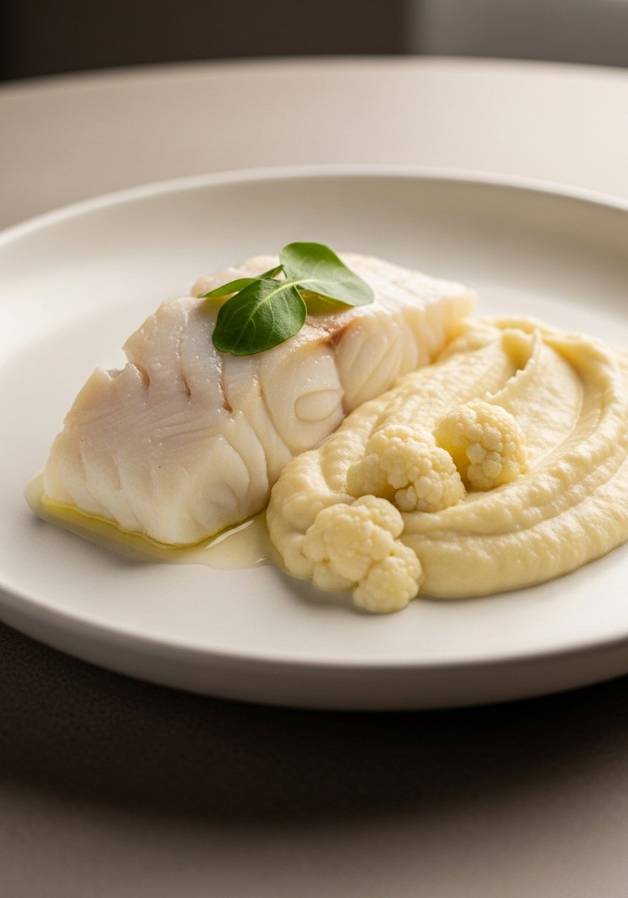 Light fish and smooth cauliflower mash create a mild, low-fiber plate with gentle textures suitable for sensitive stomachs.