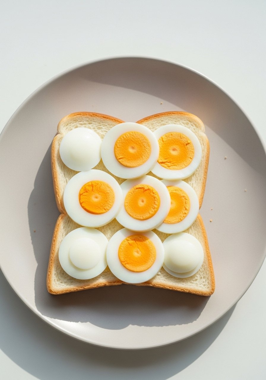 Simple, familiar, and easy to chew. Soft white toast with sliced boiled egg is mild and offers balanced protein and carbs.