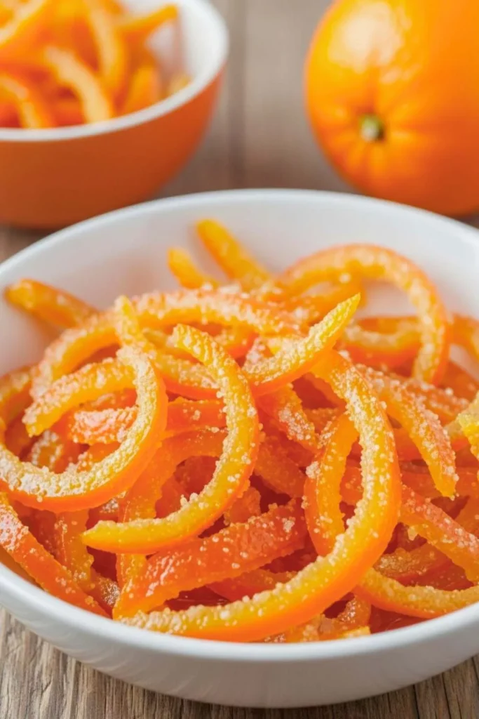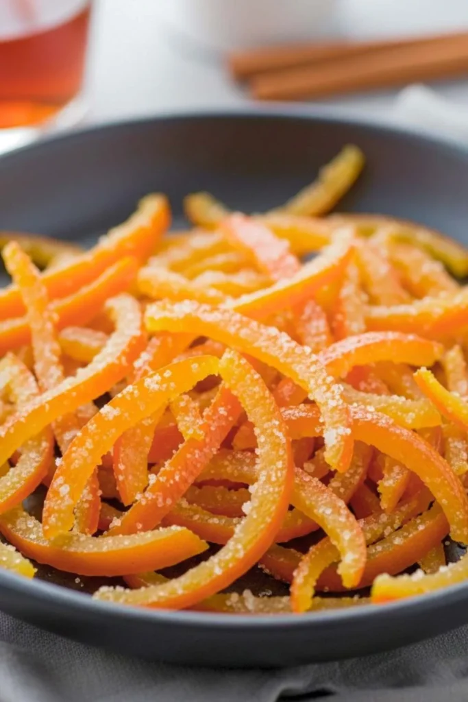 In addition to being a sweet treat, candied orange peel is versatile—it can garnish cakes, muffins, or ice cream, or be enjoyed on its own as a sophisticated snack.