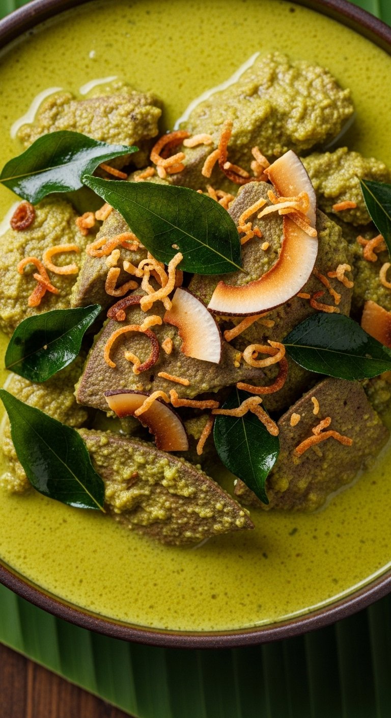 - Coconut Simmer (8–10 min): Add livers, coconut milk, and green chilies. Simmer gently 8–10 minutes until livers are cooked.