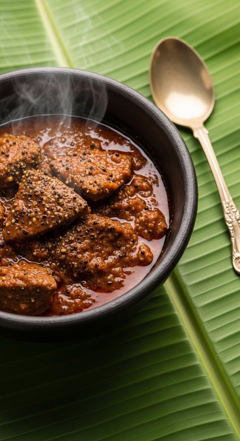 A spicy, peppery South Indian style using freshly roasted peppercorns and aromatic whole spices. It’s assertive and fragrant, ideal for pepper lovers who enjoy sharp heat and warmth.