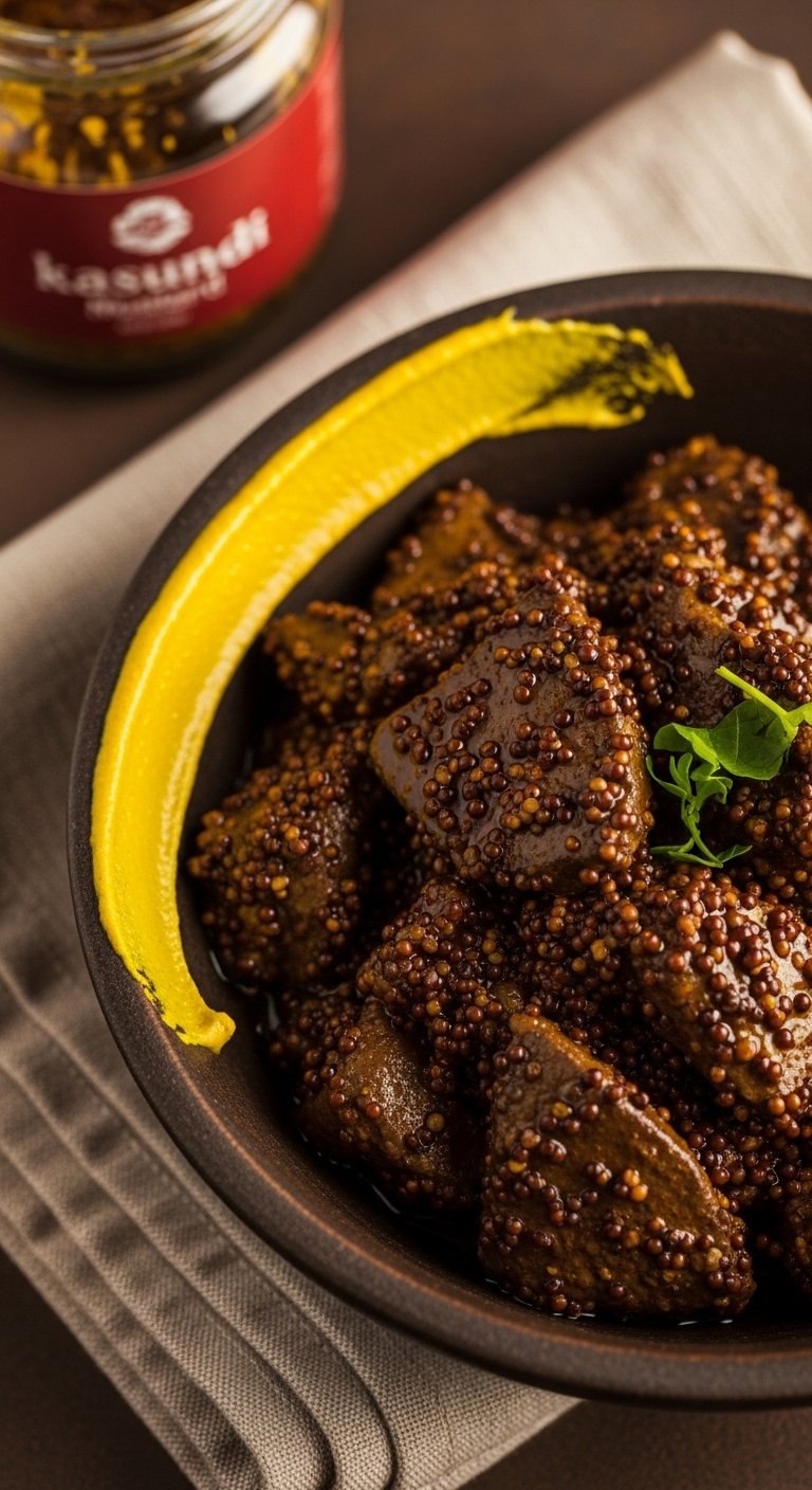 Tart, mustard-forward curry with bright vinegar notes and a silky mustard paste. The livers are tender and the sauce pairs beautifully with plain rice or luchi for a Bengali touch.
