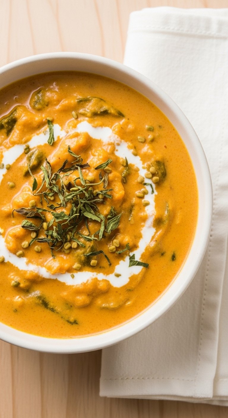A creamy, tomato-based curry with mellow spices and a touch of cream or yogurt. This version is comforting and rich, ideal for those who prefer a milder, silky sauce.