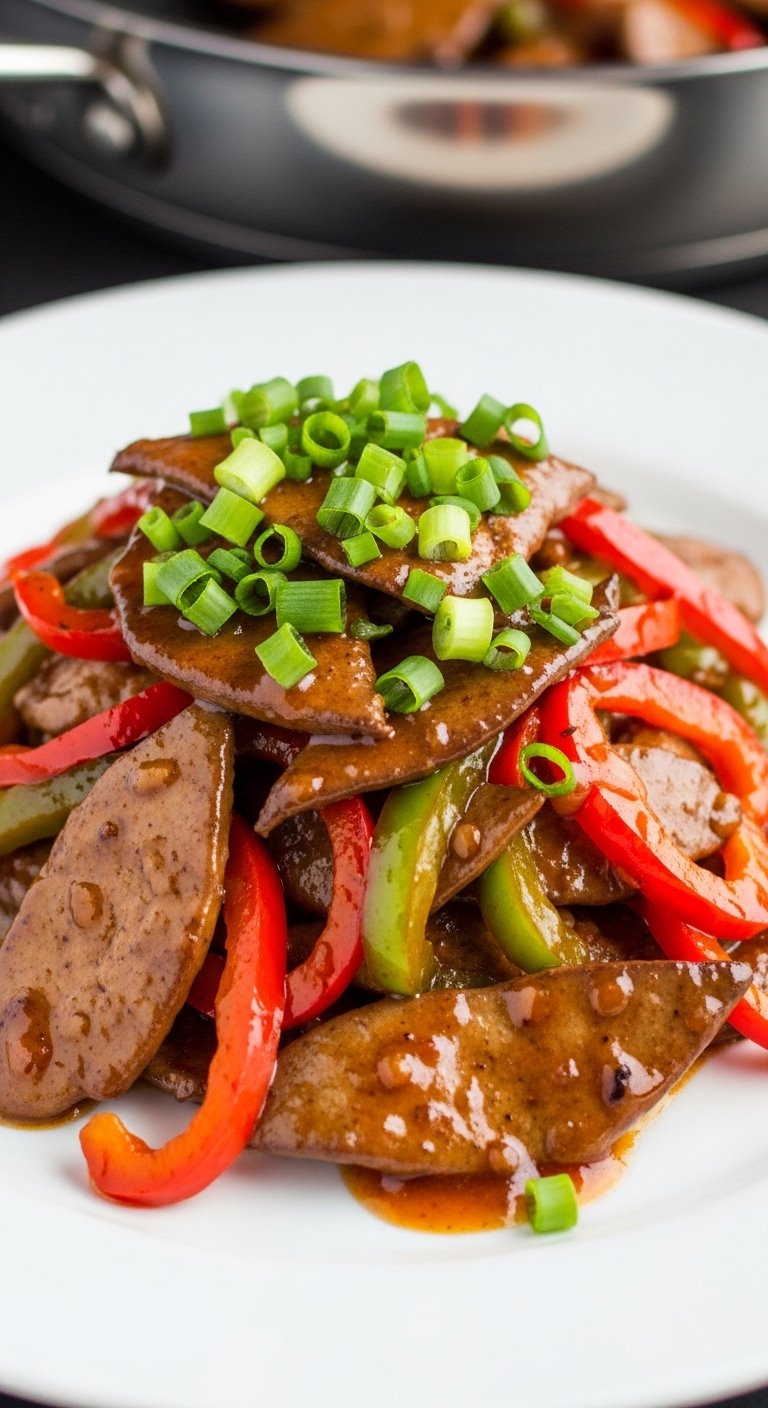 A fast, high-heat stir-fry with bell peppers and a spiced sauce. This method keeps livers tender with crisp-tender vegetables for a balanced, weeknight-friendly meal.